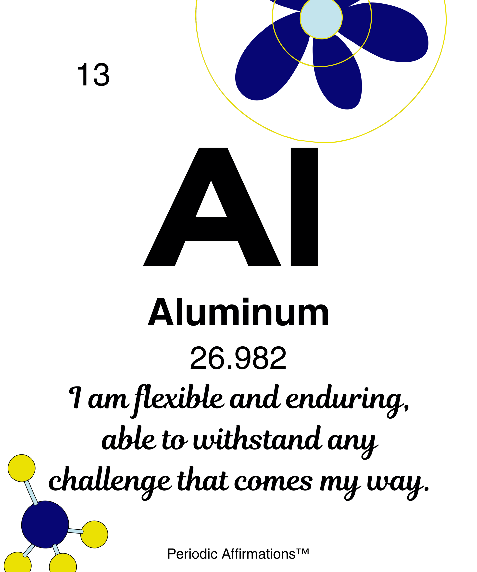 - 13-Aluminum (Al): I am flexible and enduring, able to withstand any challenge that comes my way.