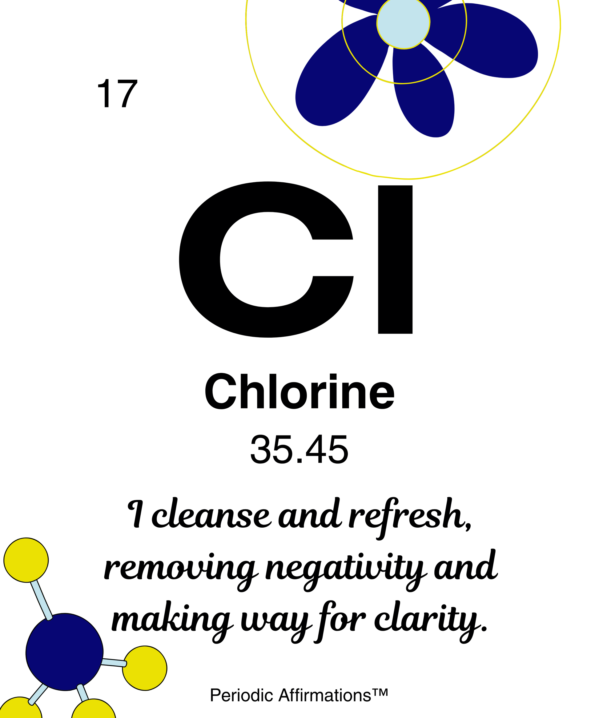 - 17-Chlorine (Cl): I cleanse and refresh, removing negativity and making way for clarity.