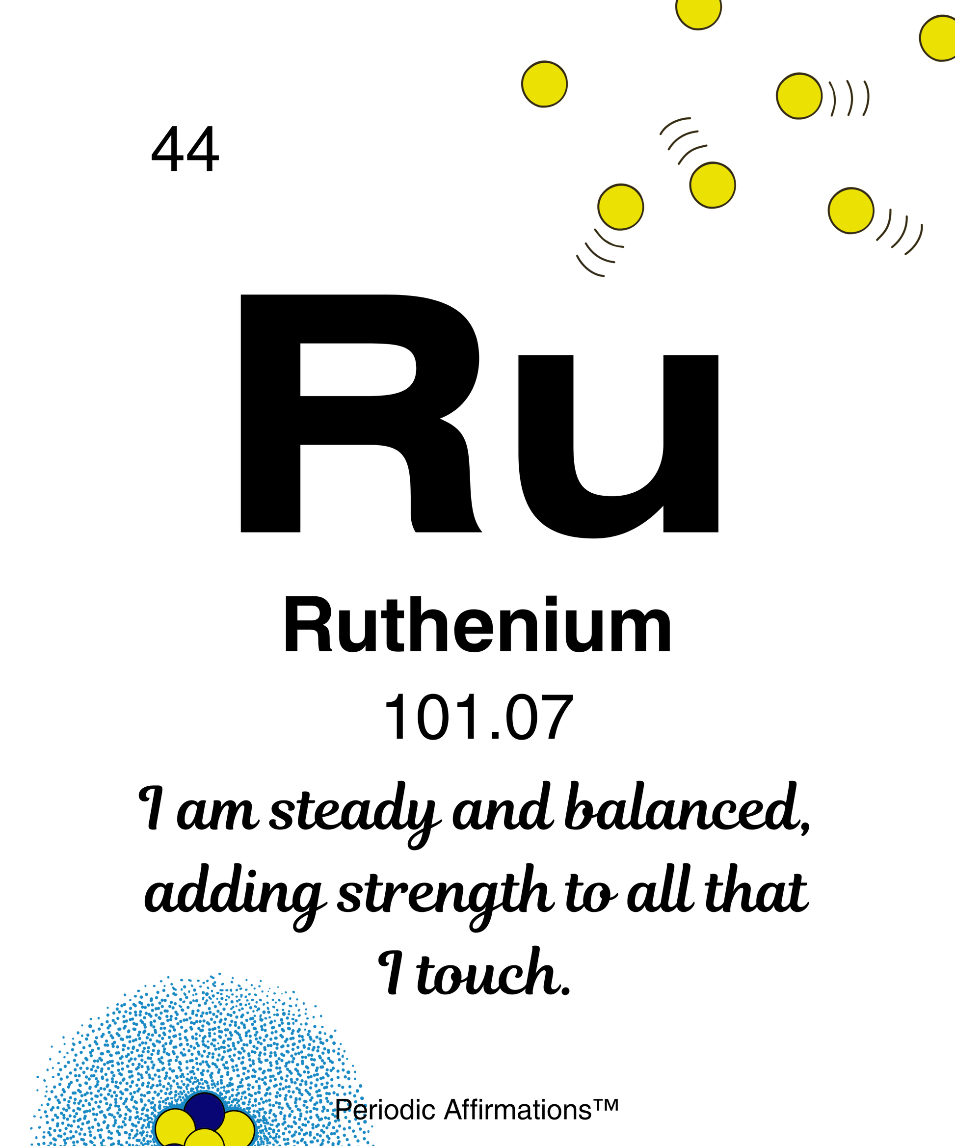 - 44-Ruthenium (Ru): I am steady and balanced, adding strength to all that I touch.