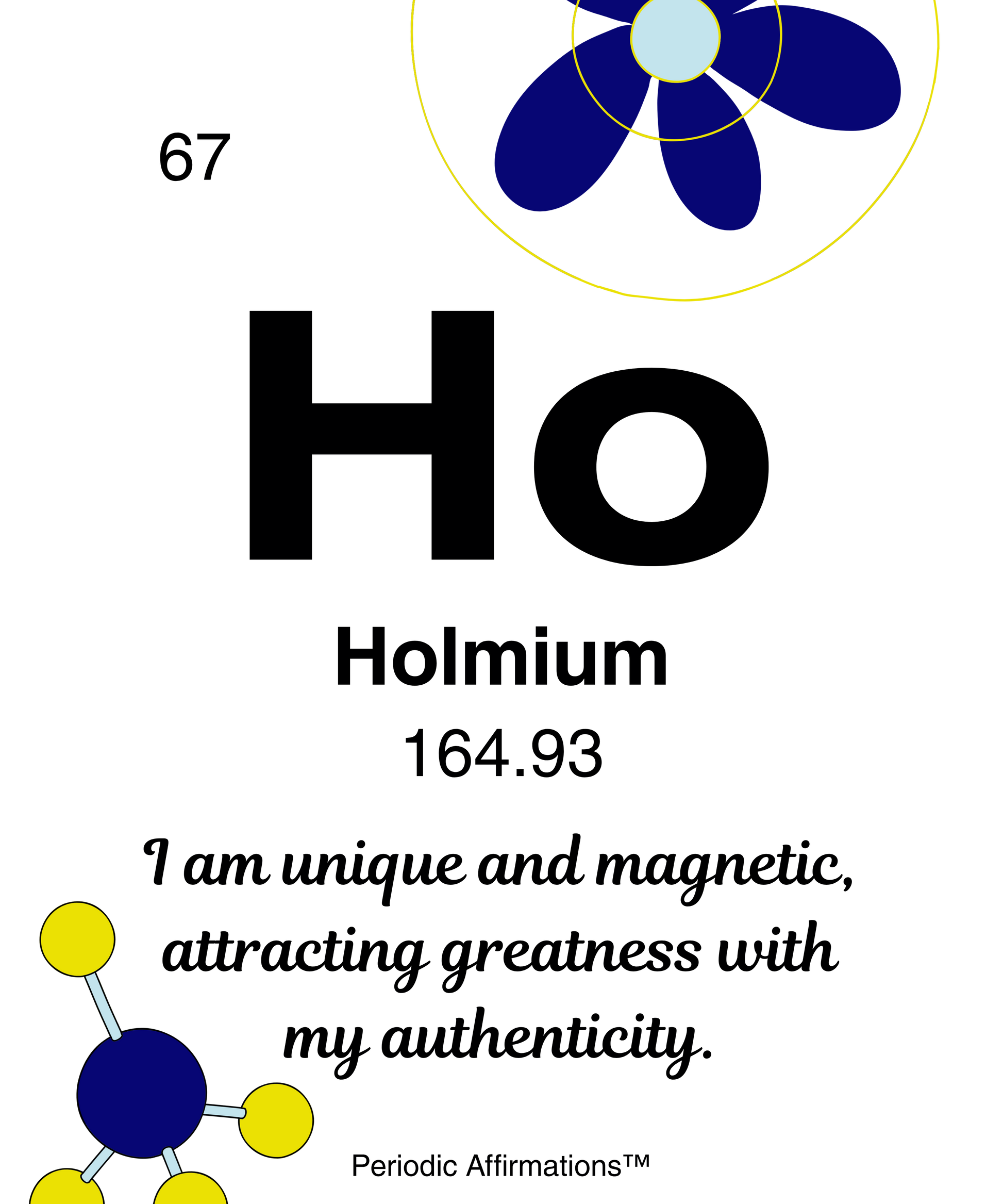67-Holmium (Ho): I am unique and magnetic, attracting greatness with my authenticity.
