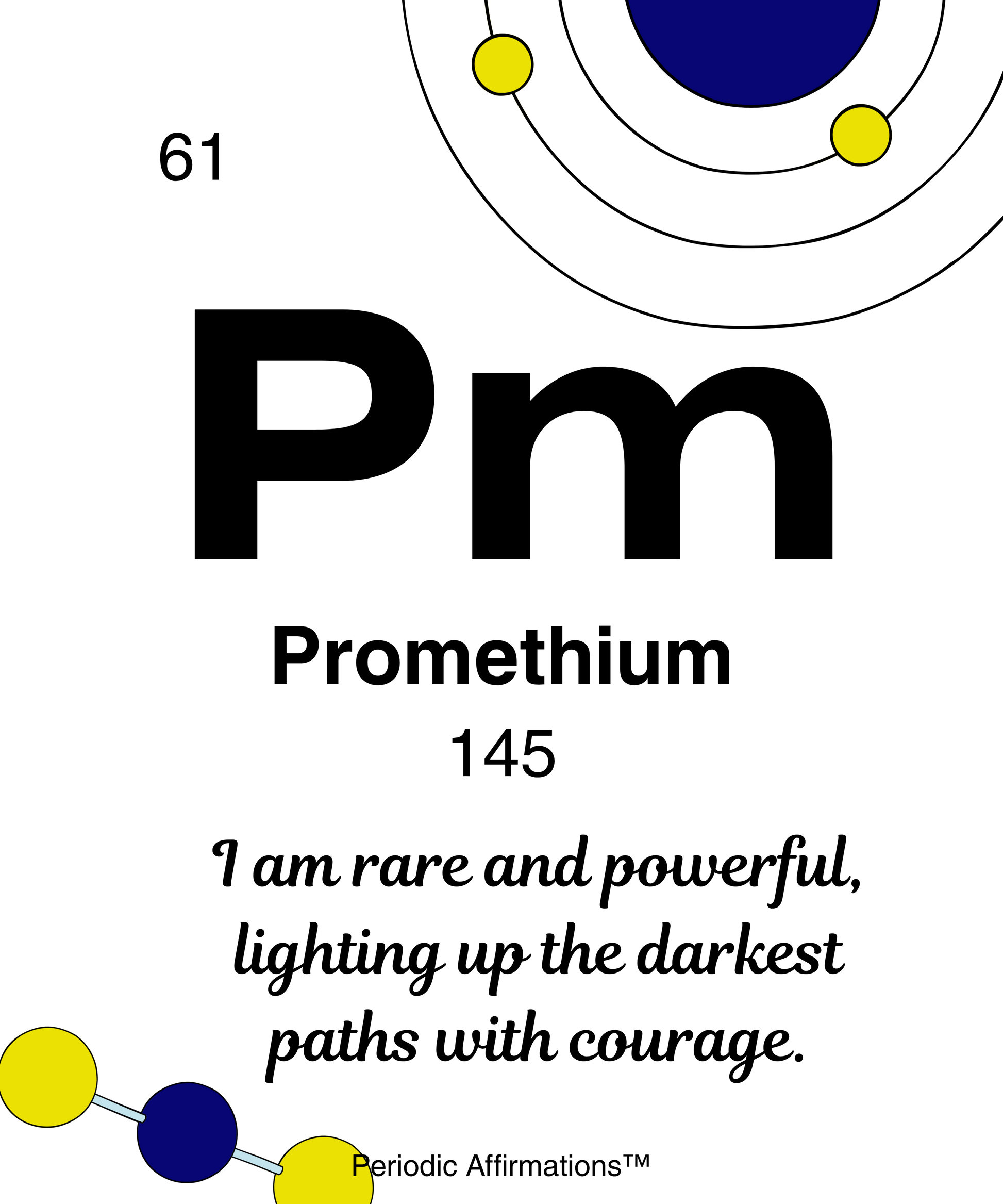 8 x10 / 61. Promethium (Pm) – "I am rare and powerful lighting up the darkest paths with courage."