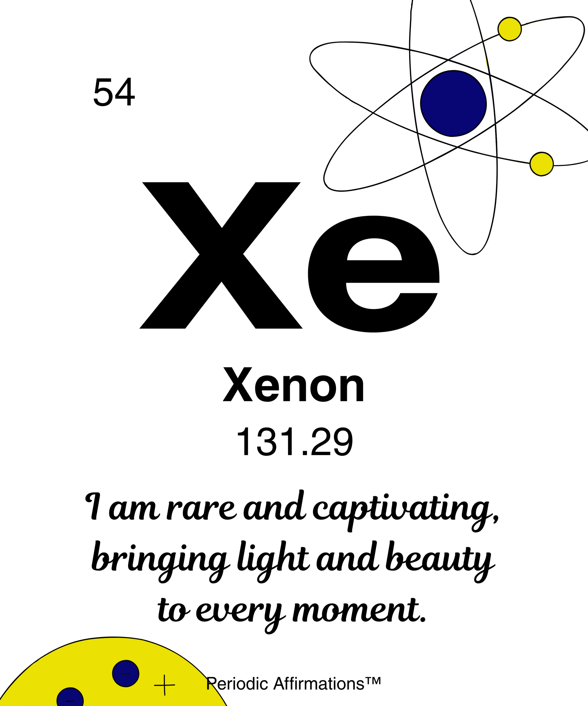 20 x 24 / 54. Xenon (Xe) – "I am rare and captivating bringing light and beauty to every moment."