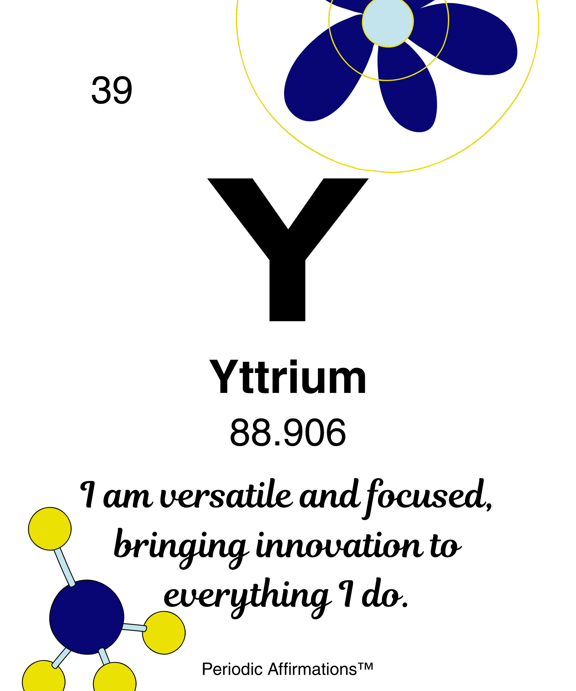 20 x 24 / 39. Yttrium (Y) – "I am versatile and focused bringing innovation to everything I do."