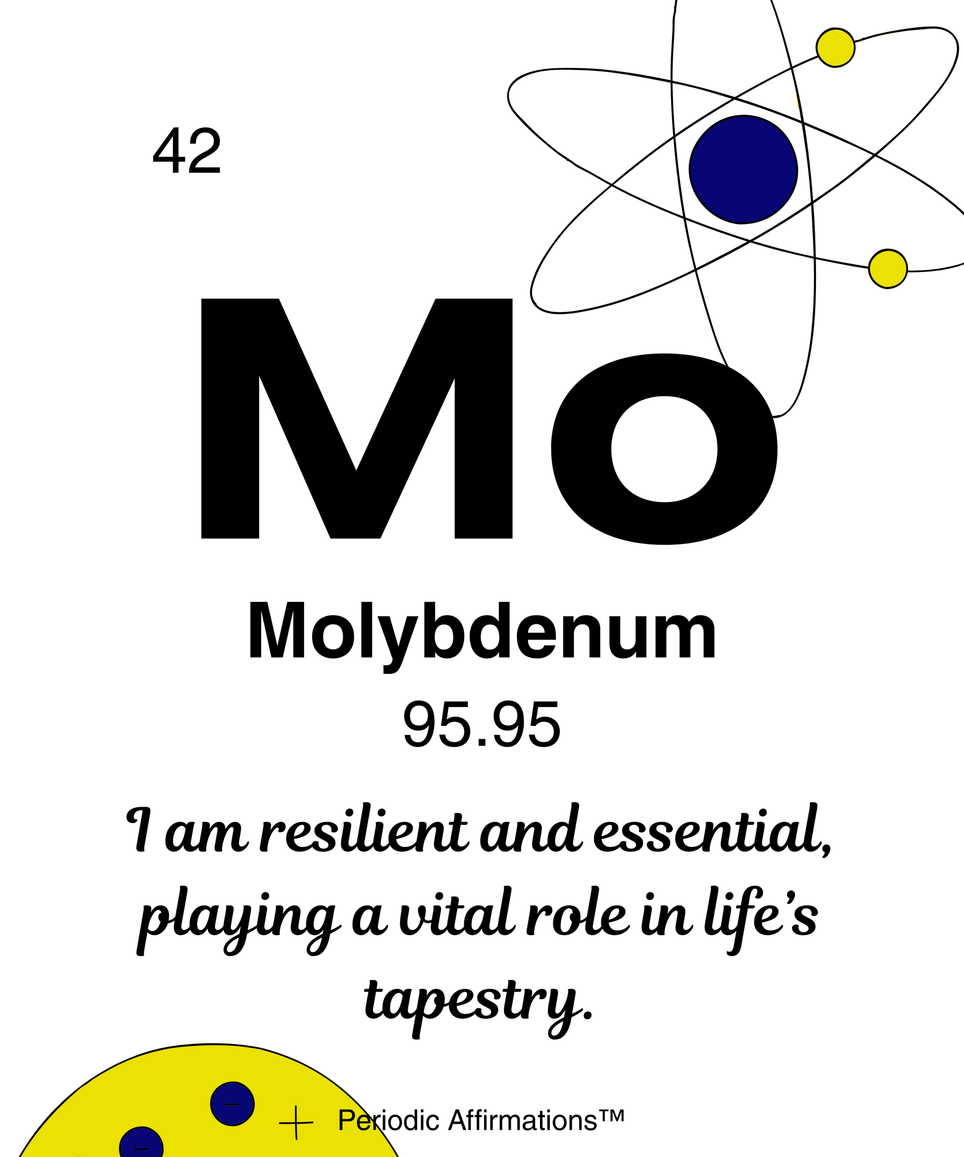 - 42-Molybdenum (Mo): I am resilient and essential, playing a vital role in life’s tapestry.