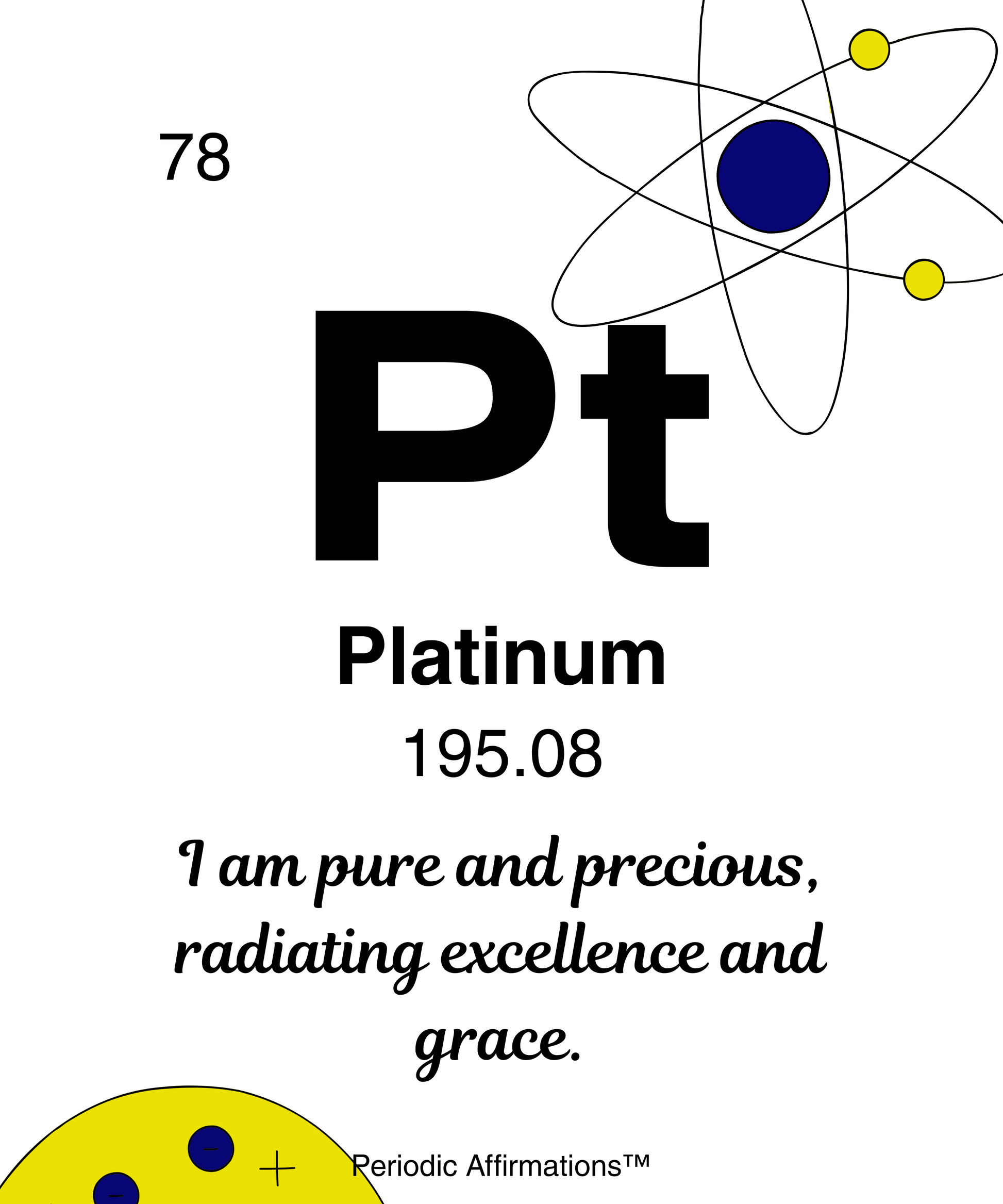 78-Platinum (Pt): I am pure and precious, radiating excellence and grace.