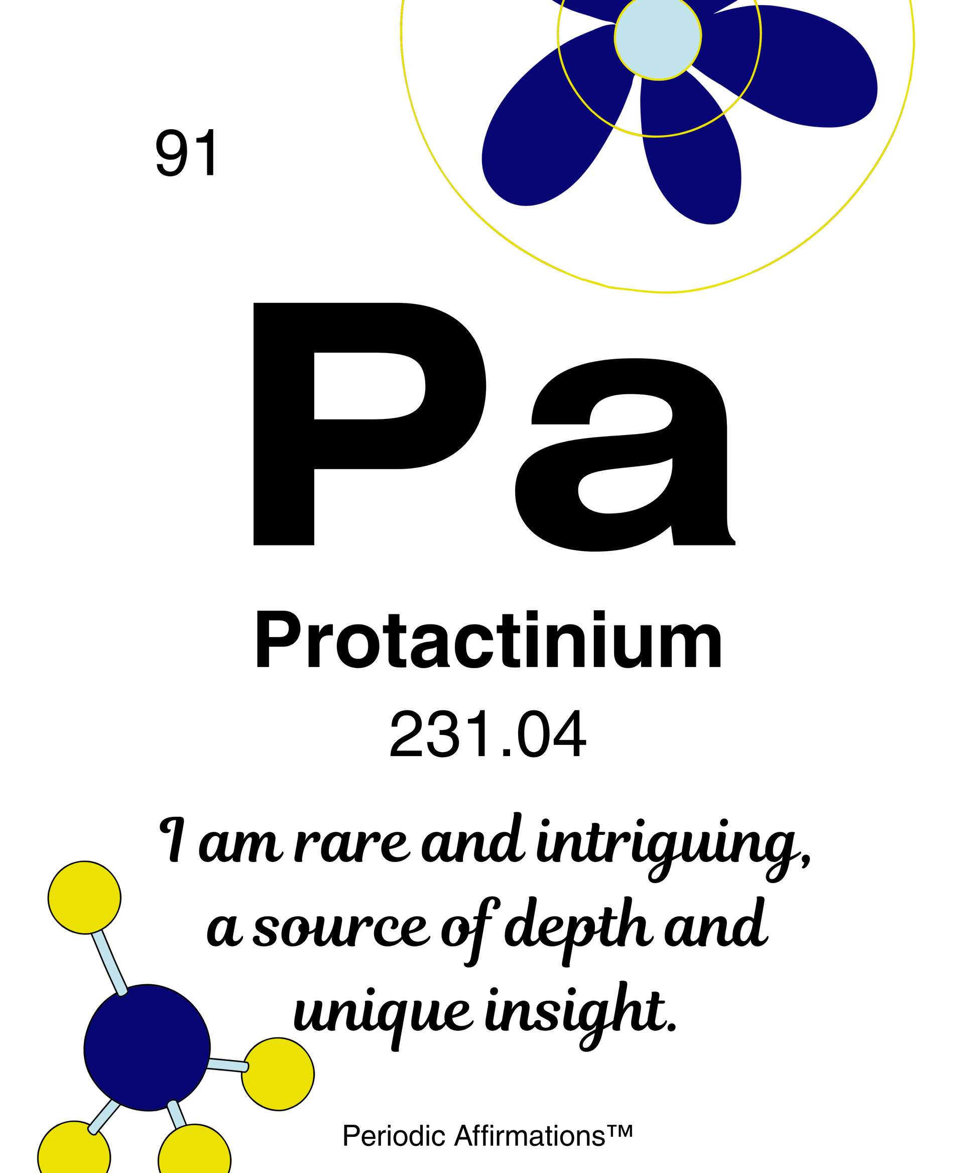 91-Protactinium (Pa): I am rare and intriguing, a source of depth and unique insight.